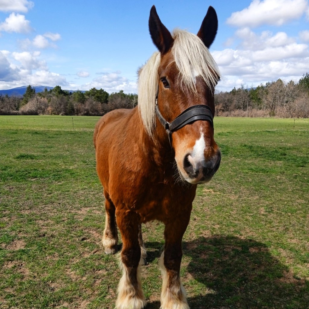 Cheval de trait Comtois, ce grand blond sait tout faire, il est monté et attelé. Habile, intelligent et doux, il est aussi agréable sous la selle que en voiture. Il est très élancé pour un cheval de trait et a de belles allures confortables et amples, ce qui en fera un parfait compagnon de balade ou de randonnée.
